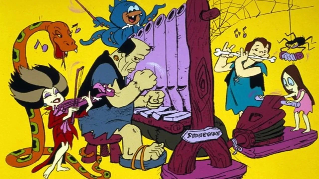 Sinopsis: The Frankenstones are a family of fictional characters who appeared on The Flintstones television series. They debuted in 1979 and appeared in various spin-offs and specials through the early 1980s. The parents are a parody of The Munsters, and the children are a parody of the Addamses.
