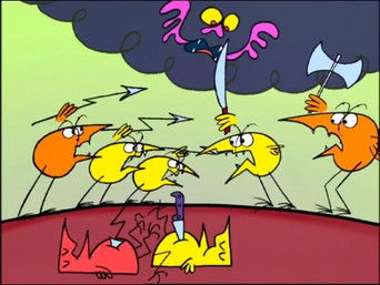 Sinopsis: La série relate les différentes histoires et mésaventures des Shadoks, des êtres anthropomorphes aux apparences d'oiseaux (à ce jour, toujours non identifiés) rondouillards possédant de longues pattes et de petites ailes ridicules.