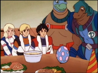 Sinopsis: Dinosaucers is an animated television series co-produced in the United States and Canada. It was created by DIC Entertainment which has done the overseas animation and in association with Ellipse Programmé and Nelvana. This animated program originally aired in syndication in the USA in 1987 by Coca-Cola Telecommunications. 65 total episodes were made throughout the show's broadcasting, but it only lasted one season during the 1987-1988 television season. The show's first 21 episodes can be purchased individually by episode or as a set from online retailer Amazon.com. There were originally plans by Galoob to release a Dinosaucers toyline, and prototype figures were produced; however, the line was scrapped after the show was canceled. The toys included Stego, Bronto-Thunder, Allo, Bonehead, Plesio, Quackpot, Ankylo, and Genghis Rex.